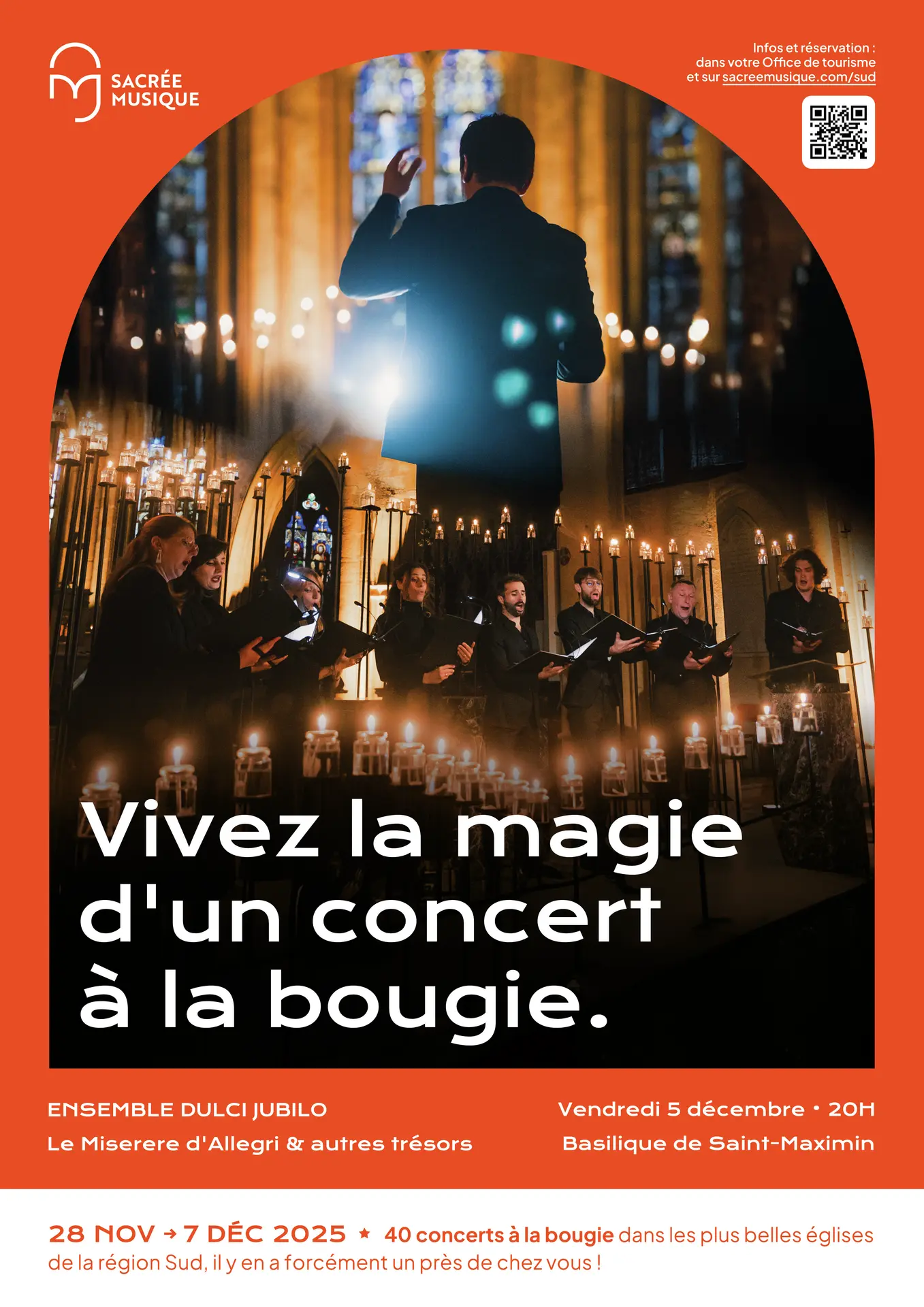 La Basilique s'habille de milliers de bougie pour recevoir l'ensemble Dulci Jubilo. Préparez vous aux Miserere d'Allegri et de nombreux autres trésors de cet ensemble de voix venu du sud ouest.