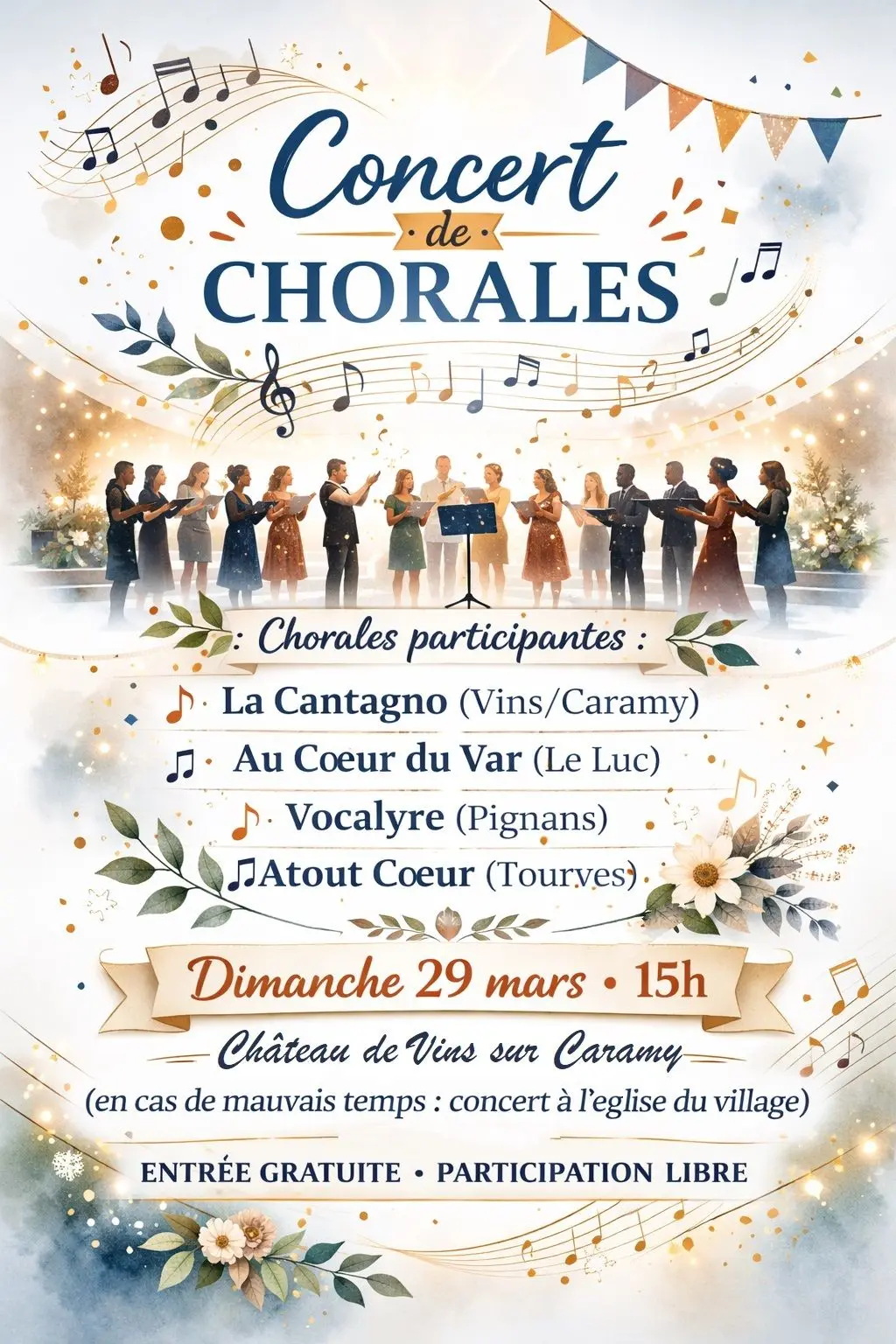 Laissez vous surprendre par les chants des différentes chorales: La Cantagno, Au cœur du Var, Vocalyre et Atout Coeur