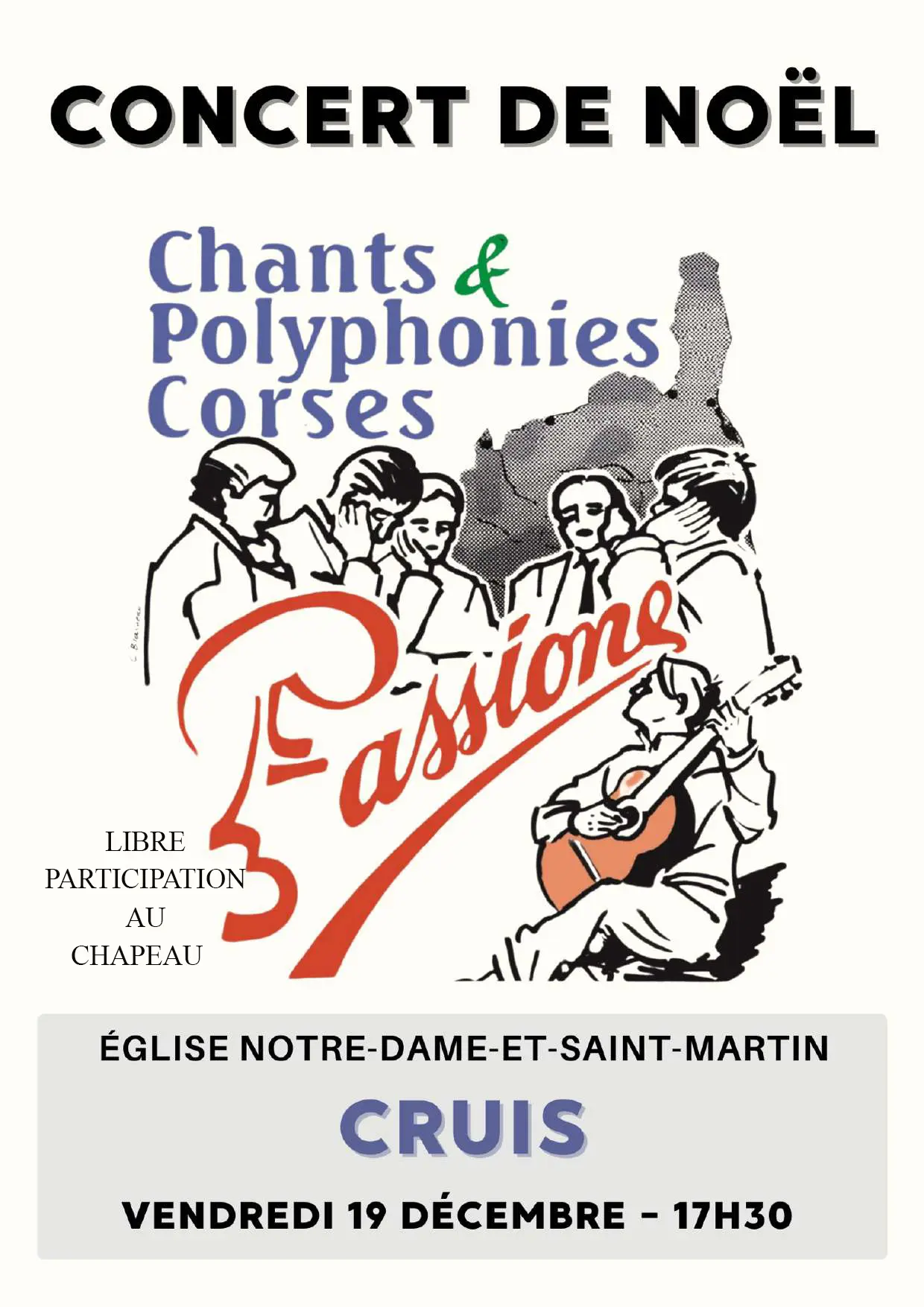 Chants et polyphonies de Noël Corses (chant et instruments) par le groupe PASSIONE venu de Corse.
