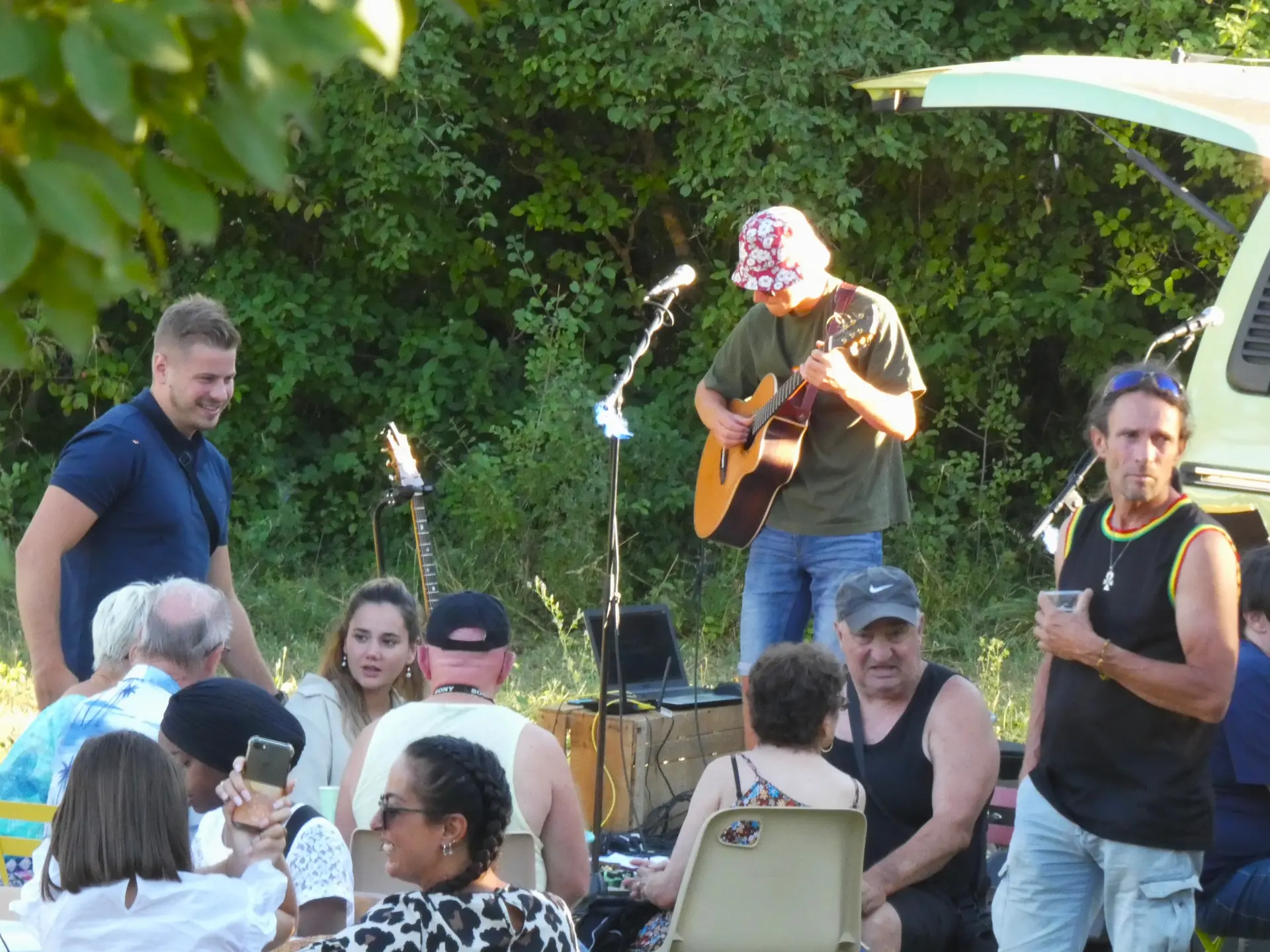 Animation musicale sur le marché avec un bœuf de musiciens épinois : Patricia, Éric et Yves.