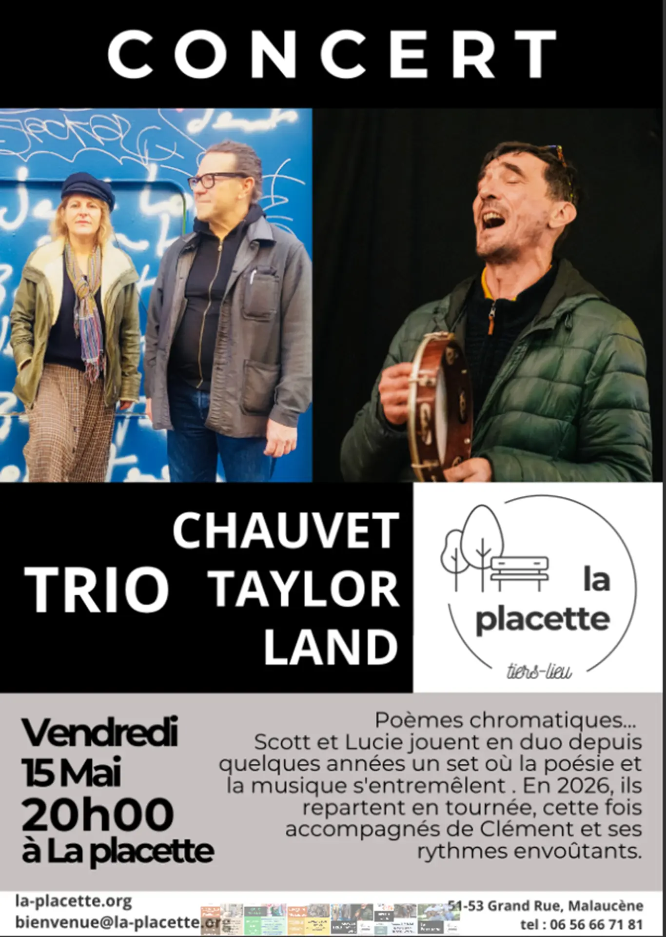 Depuis plusieurs années, Scott et Lucie se produisent en duo, mêlant subtilement poésie et musique. En 2026, ils reprennent la route pour une nouvelle tournée, rejoints cette fois par Clément, dont les rythmes envoûtants viennent enrichir leur univers.