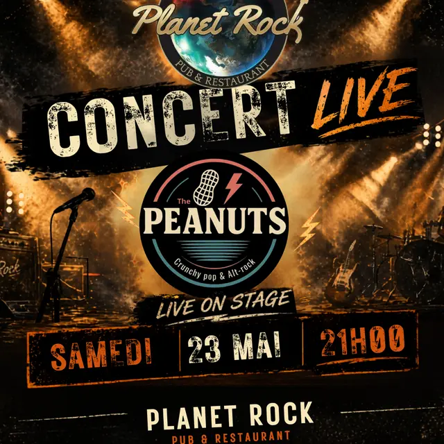 Le Planet Rock accueille The Peanuts pour un concert live. Ce groupe vauclusien propose des reprises rock, pop et punk, des classiques de Bob Dylan ou Queen aux titres de Nirvana, Muse ou Arctic Monkeys.