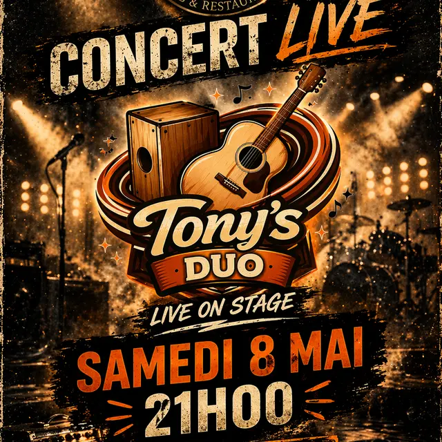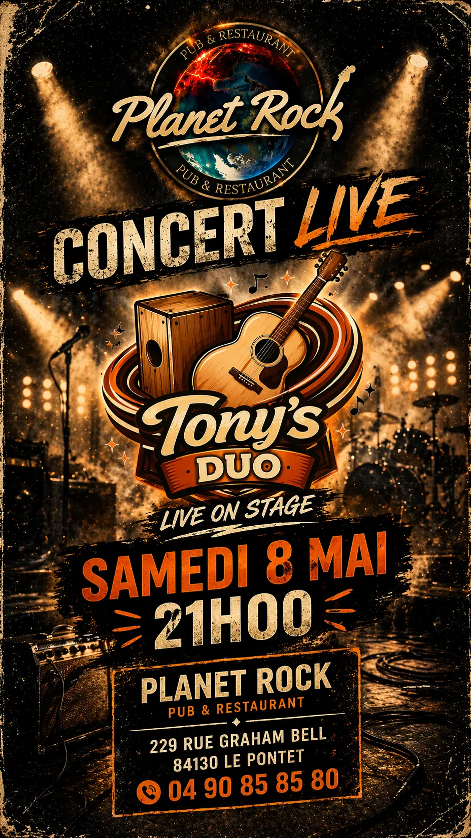 Le Planet Rock Pub & Restaurant accueille le Tony’s Duo, composé de deux membres du groupe The Tony Truand. Dominique (cajón/batterie) et Philippe (guitare/chant) proposent un répertoire varié, de Joe Dassin à Bob Marley, en passant par Cabrel, Bashung, Daho ou Eddy Mitchell. Une soirée conviviale autour de chansons que tout le monde connaît.