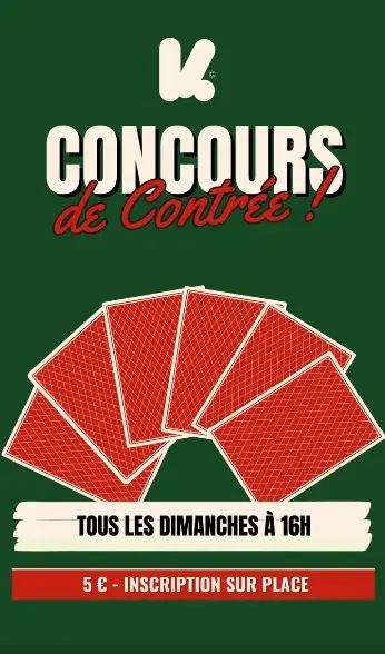 Amateurs de cartes, rendez-vous chaque dimanche au Krystal pour notre concours de contrée dans une ambiance conviviale et chaleureuse !