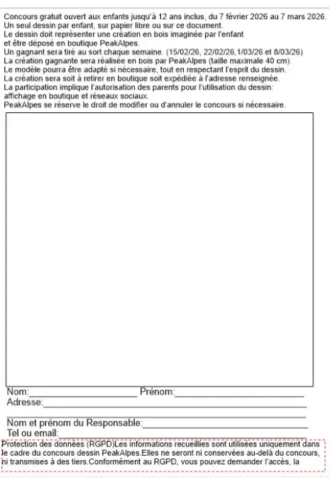 Concours gratuit ouvert aux enfants jusqu’à 12 ans inclus, organisé par PeakAlpes.