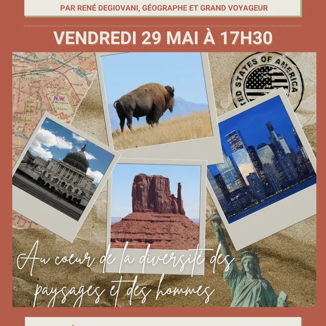 À l’approche de la Coupe du Monde de football organisée cette année en Amérique du Nord, cette conférence vous propose de découvrir autrement les Etats-Unis, ce vaste pays. Le vendredi 29 mai à 17h30, René Degiovani, géographe et grand voyageur, vous emmène pour un périple à la découverte d’un territoire aux mille visages. Des déserts du Sud-Ouest aux glaciers du Nord, des forêts des Appalaches aux grandes plaines, des parcs nationaux superbes aux banlieues démesurées, se dessine une terre de contrastes et de d’immensité. Au fil de cette traversée, c’est aussi la diversité des hommes et des cultures qui se révèle, offrant une lecture sensible de ce pays fascinant et mythique.