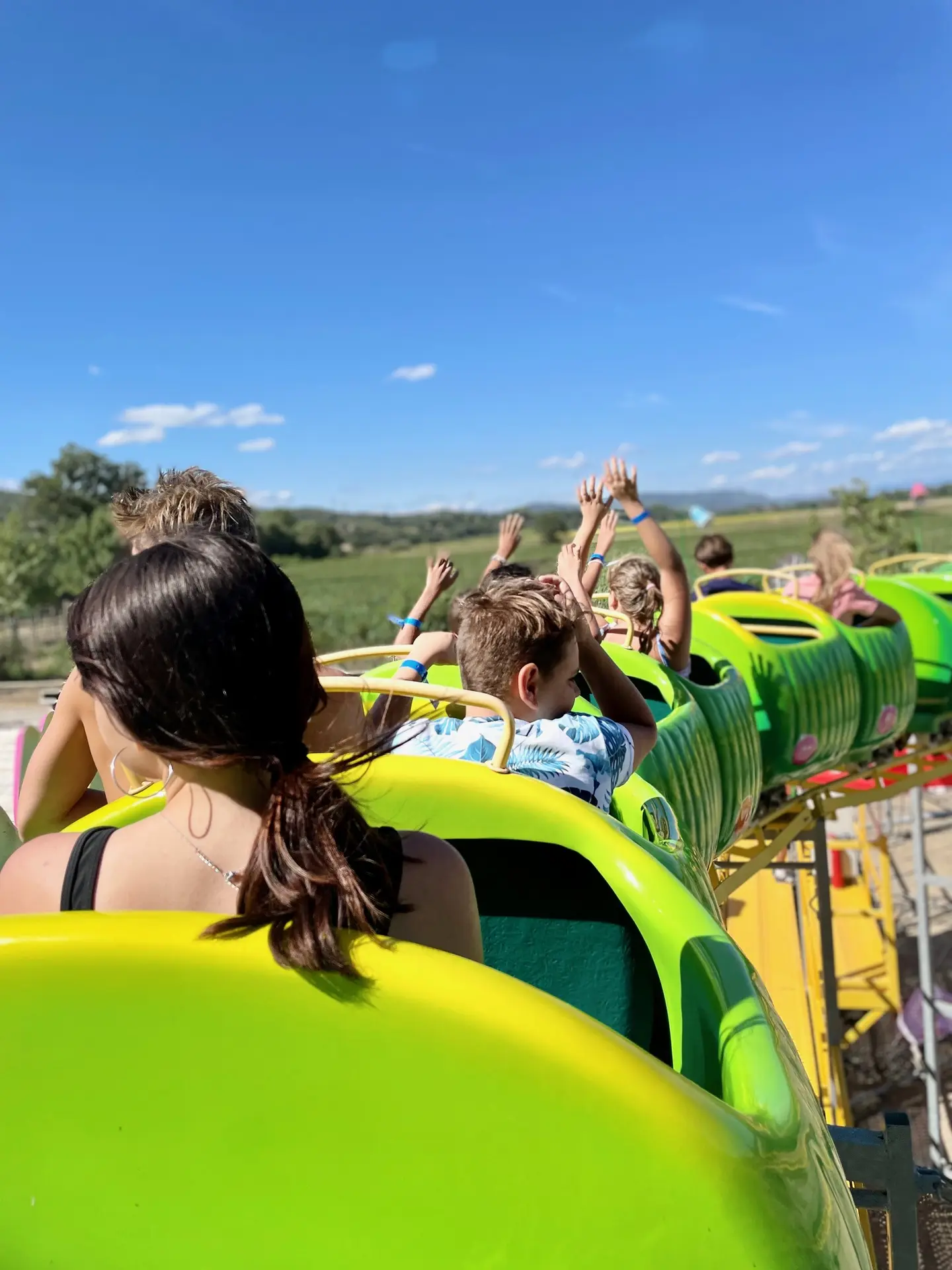 Profitez en même temps de nombreux manèges comme notre Chenille, notre Grande Roue, nos Toboggans Géants, tyroliennes, trampolines etc...