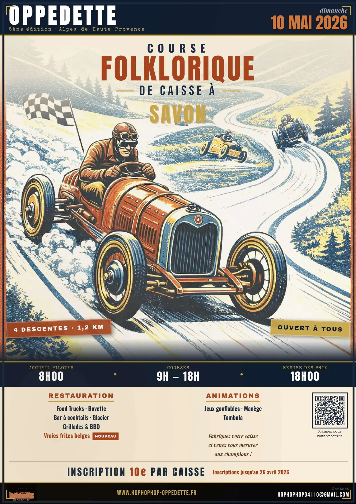 Inscriptions: 10€ par caisse à savon.