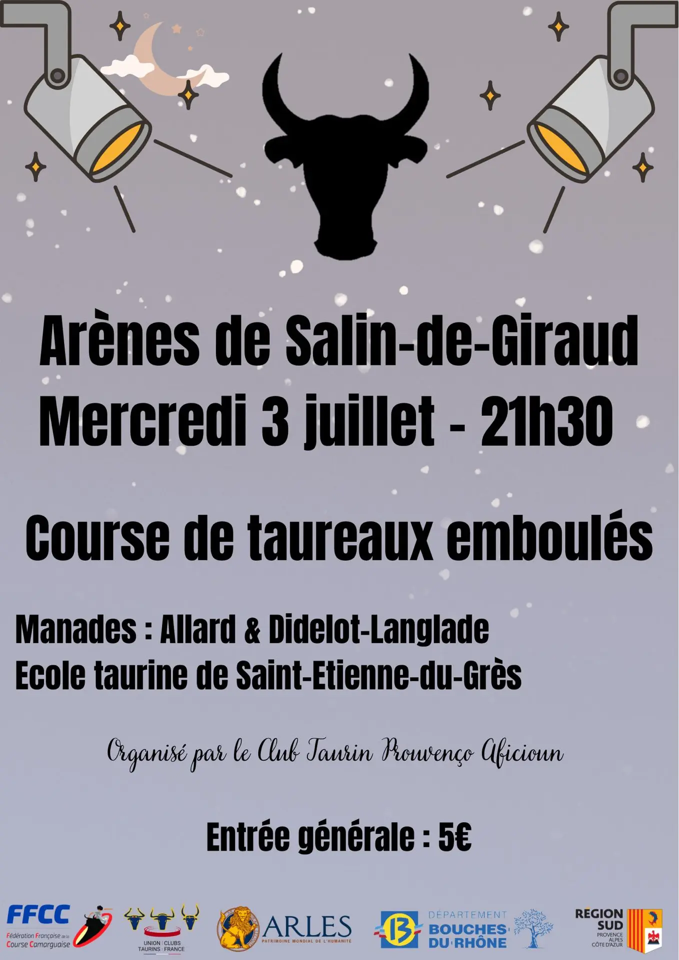 Prochain rendez-vous aux arènes de Salin-de-Giraud le mercredi 3 juillet à 21h30 !