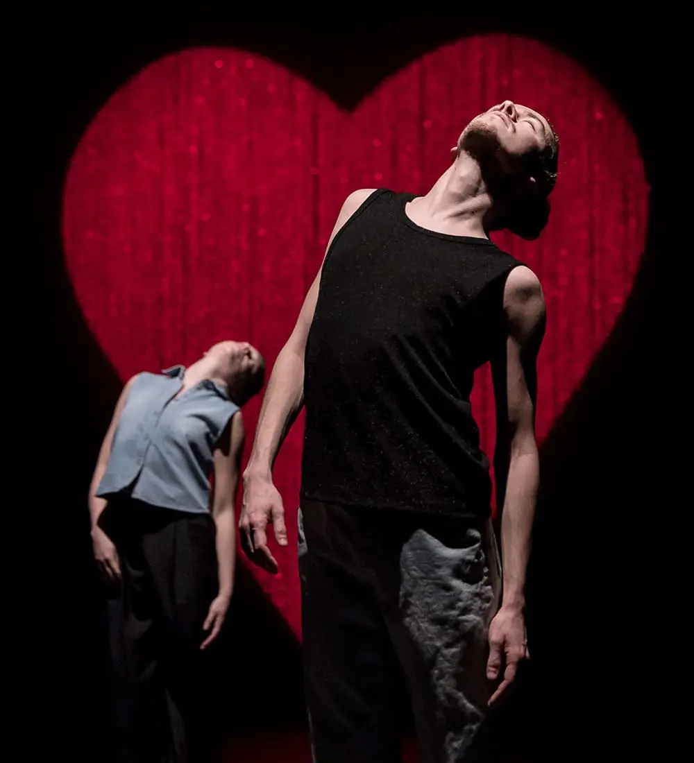 Du music-hall français aux comédies musicales de Broadway, des tubes discos aux sons des années 90, jusqu’aux musiques actuelles, quatre interprètes nous entraînent dans un spectacle généreux, ludique et intime. Des plumes et des paillettes à de simples présences dansées, du play-back à la chansonnette, d’amour explore les souvenirs des premières amours, les questionnements de la découverte, le tourbillon des sentiments et de l’acceptation de soi, l’importance et la valeur des différences. De partitions énergiques et enlevées à d’autres plus sensibles et poétiques, Thomas Lebrun met en danse l’amour sous toutes ses formes.