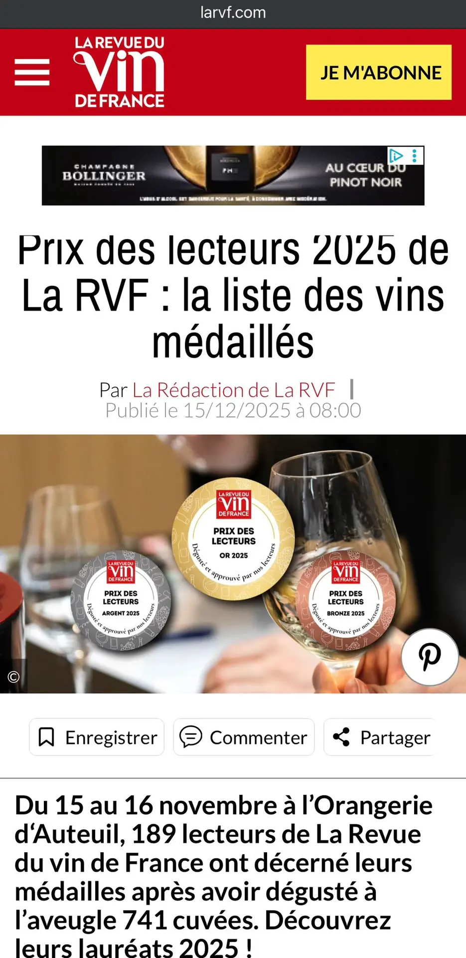 Les Voeux, le blanc de futs 100% Chardonnay de Martin Ebersbach (Vigneron indépendant de la Somme) dont 26 % passé en barriques en Bio, médaille de bronze de la revue de France.