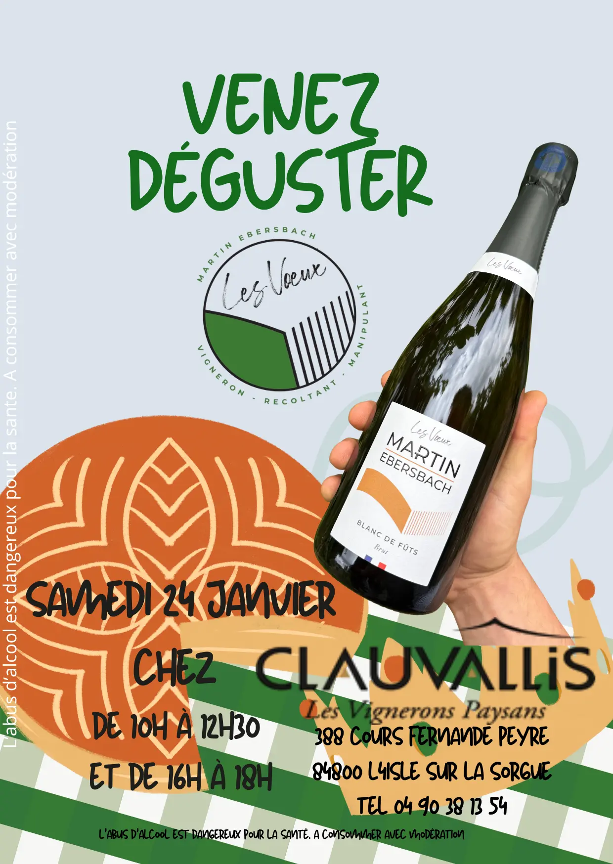 Venez déguster le mariage des "Voeux" le Blanc de Futs de Martin Ebersbach et la galette des rois chez Clauvallis au cours Fernande Peyre de l'Isle sur la Sorgue le samedi 24 janvier 2026 de 10h30 à 12h30 et de 16h00 à 18h00.