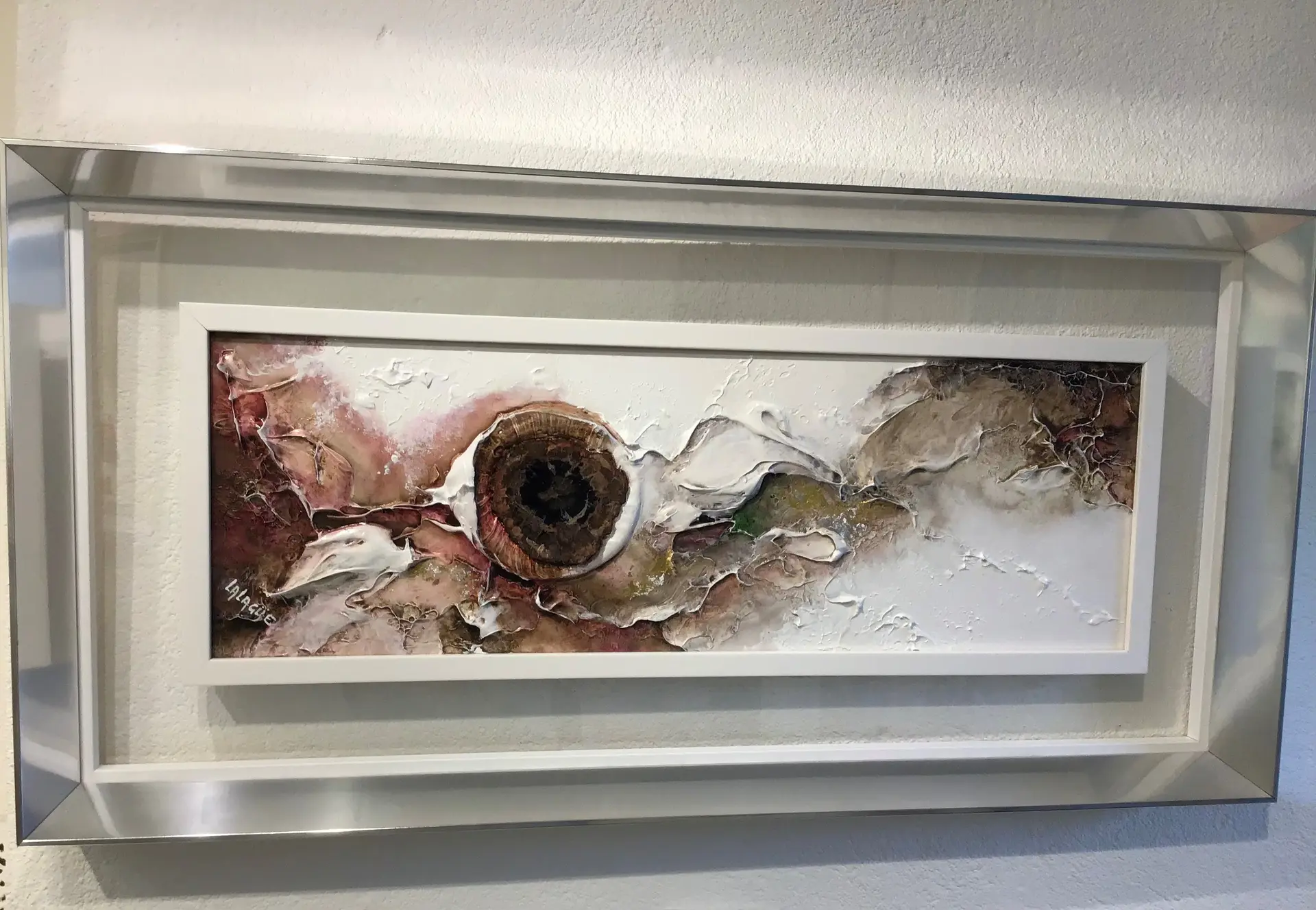 A découvrir durant tout l'été, les dernières œuvres de l'artiste saint-pauloise Joëlle Lalague. Des peintures réalisées autour de fossiles vieux de -250 à -280 millions d’années.