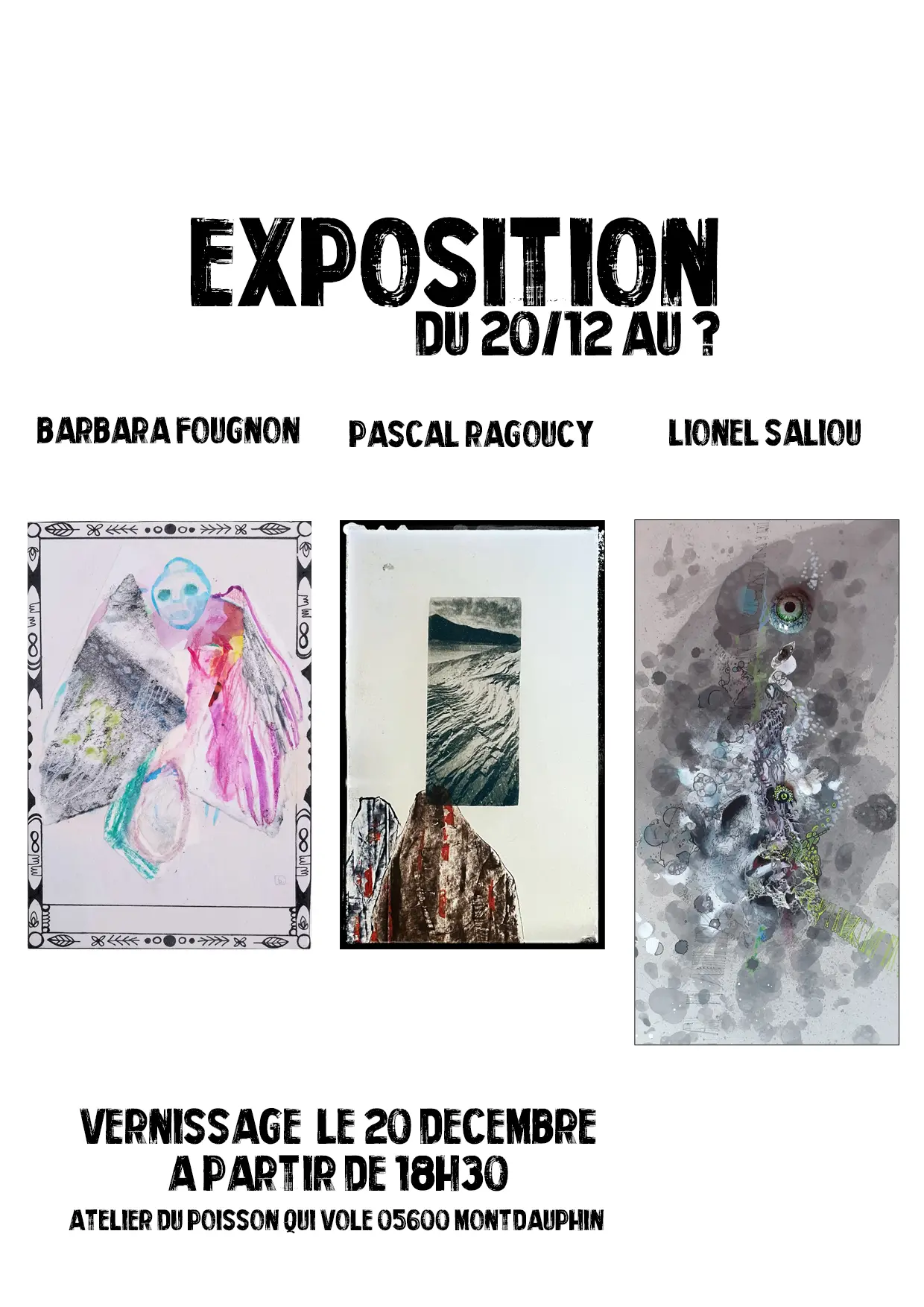 Dès 18h30, à l'Atelier du Poisson qui Vole, une expo collective des travaux récents de Pascal Ragoucy, Lionel Saliou et Barbara Fougnon, et à partir de 19h30, à l'atelier Mille et un Morceaux, les œuvres de Camille Rouzet et Nora Vaton. Venez nombreux.ses et curieux.ses!