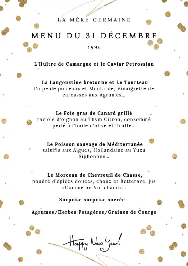 Venez célébrer la Saint-Sylvestre à La Mère Germaine autour d’un dîner gastronomique unique pour débuter la nouvelle année !