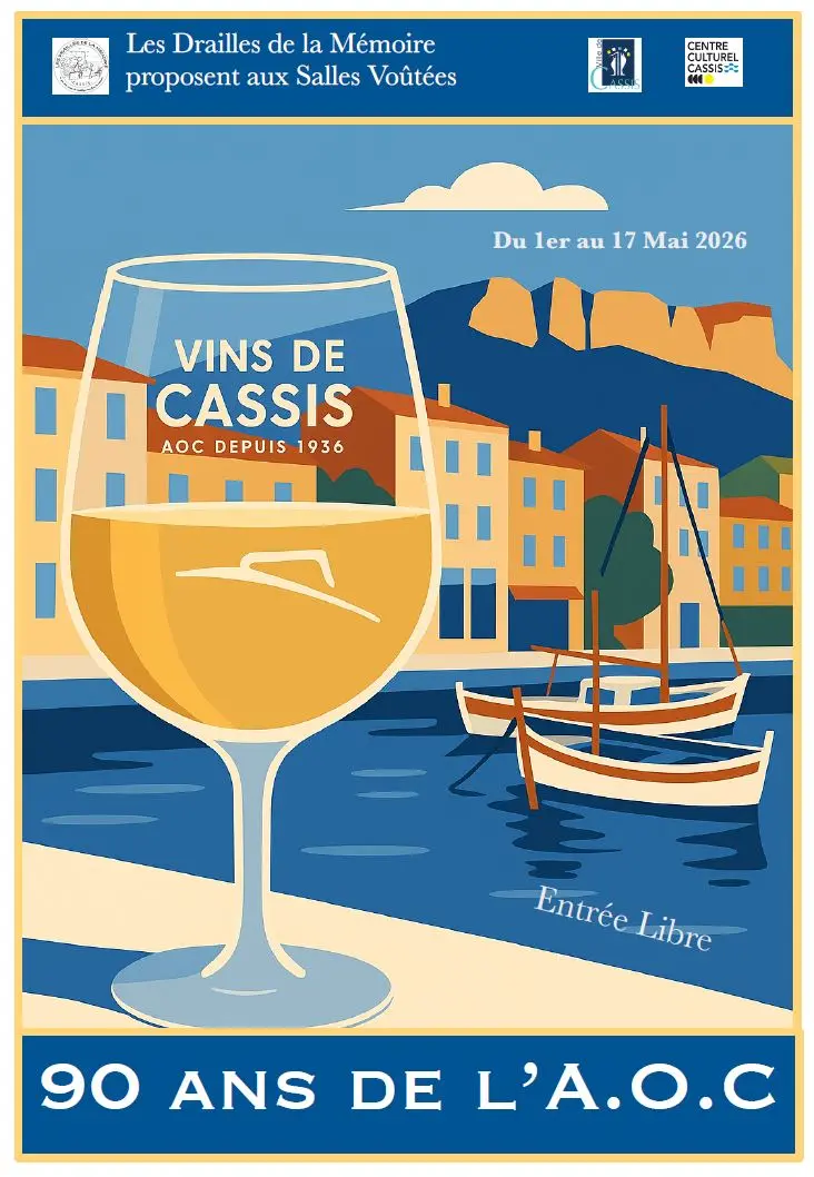 Du 1er au 17 mai 2026, l’exposition « 90 ans de l'AOC du Vin de Cassis » des Drailles de la Mémoire s’installe dans le cadre unique des Salles Voûtées, situées place Baragnon, en plein cœur du village de Cassis.