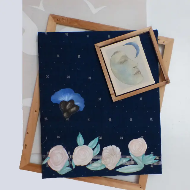 Patricia Roussel présente quelques toiles sur un thème central dans son œuvre : " l'intérieur et l'extérieur", "le dedans, le dehors".