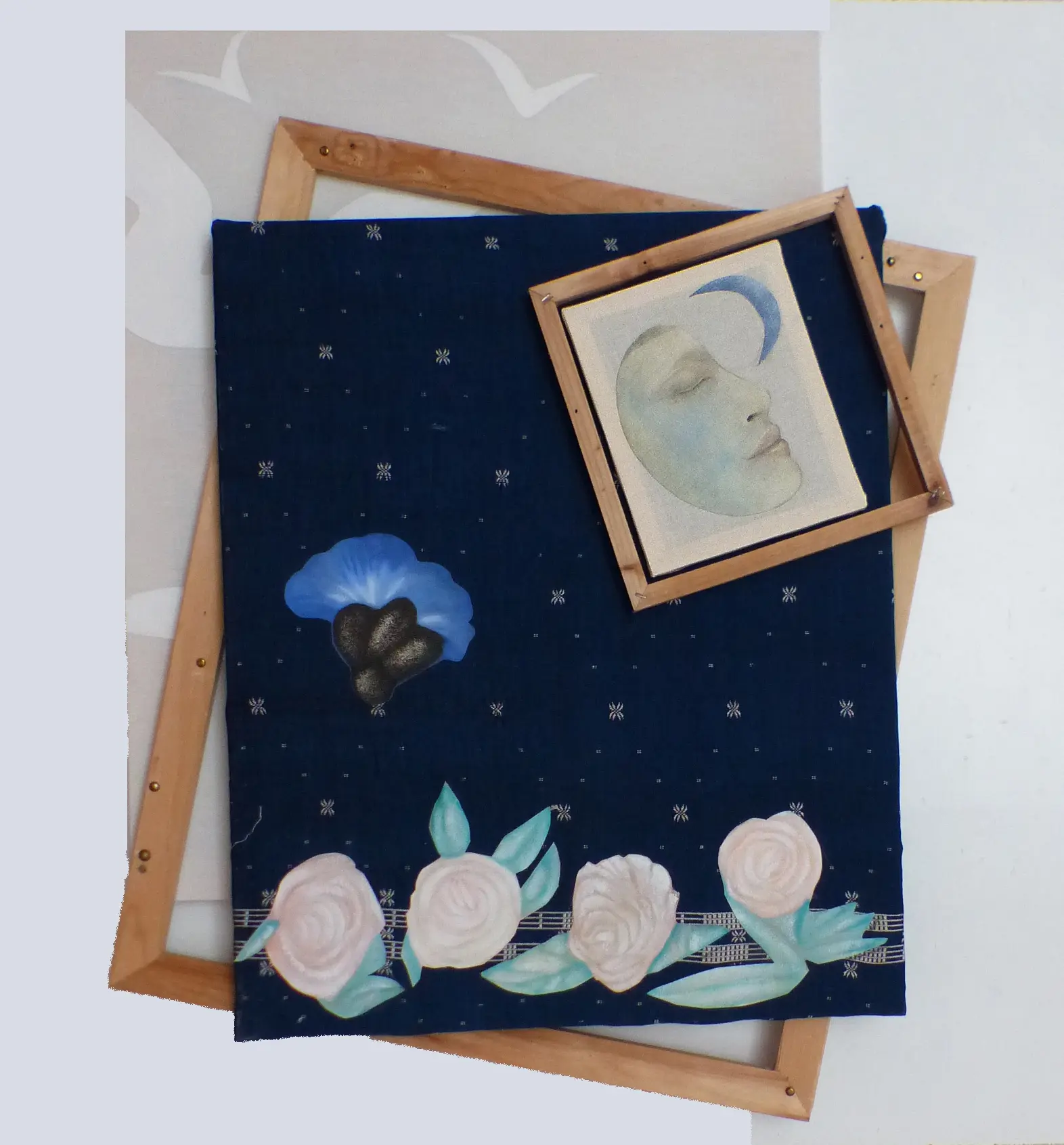 Patricia Roussel présente quelques toiles sur un thème central dans son œuvre : " l'intérieur et l'extérieur", "le dedans, le dehors".