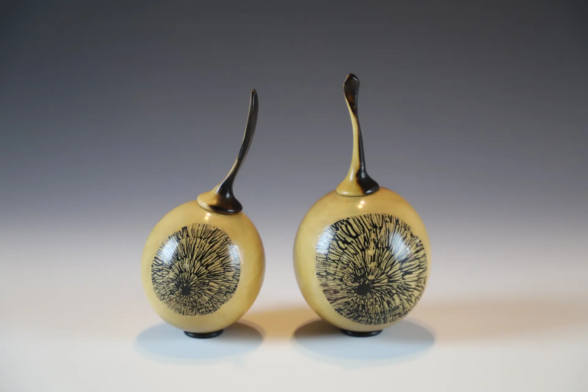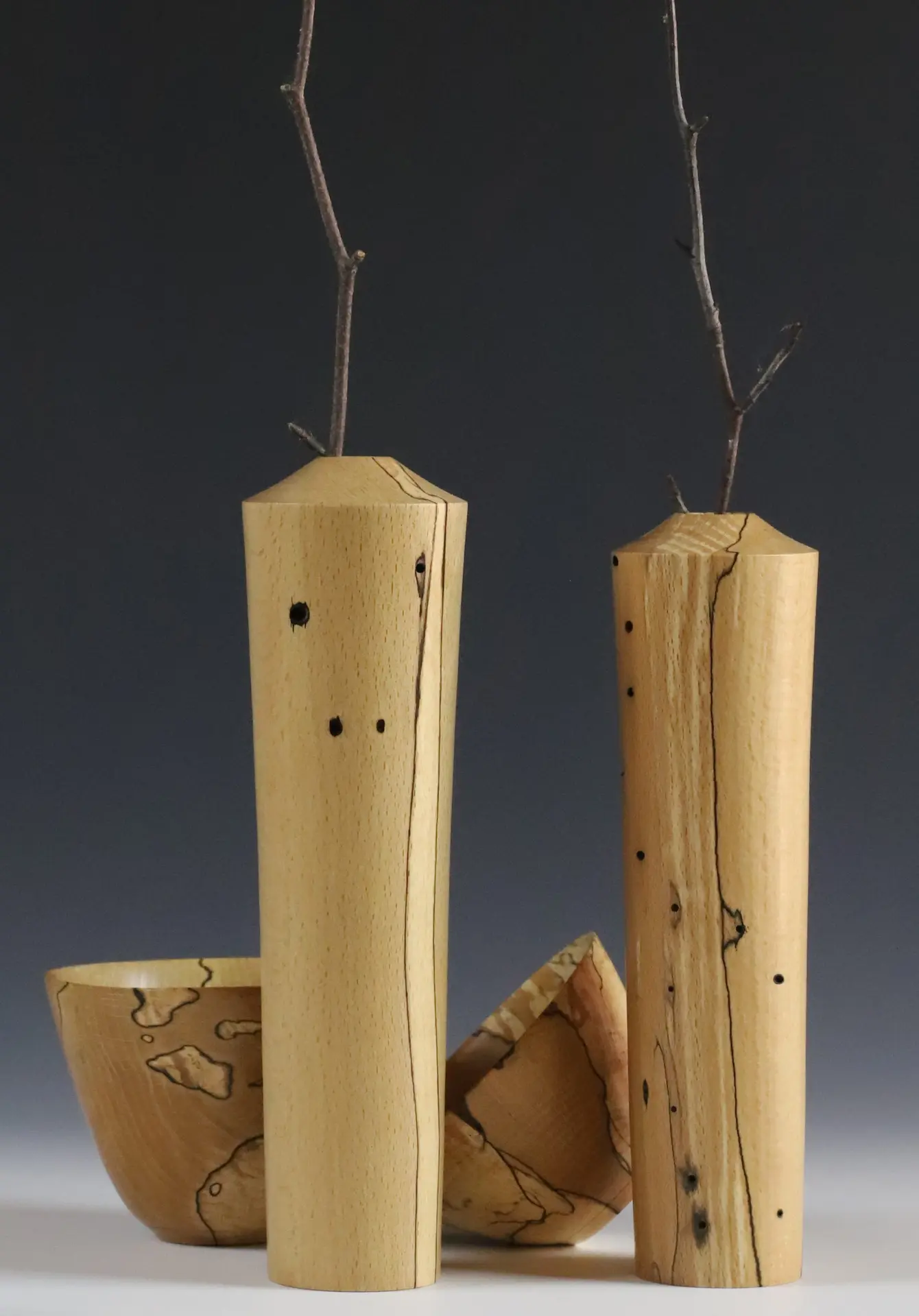 Dans l'atelier, vous pouvez me voir travailler avec gouges, bédanes, grains d'orges, planes... Ces outils, guidés par ma main, insufflent une forme unique à chaque objet : Vases, coupes, boîtes, sphères ...