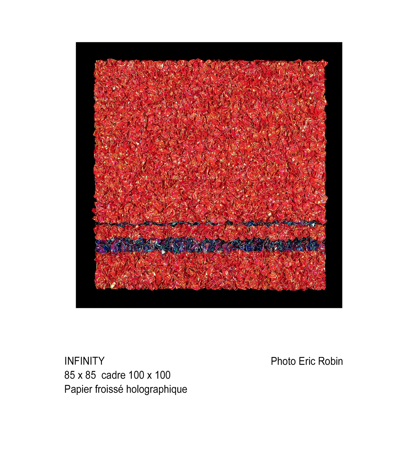 En 2015, en complément des œuvres abstraites, il s’oriente vers d’autres recherches et expressions qui lui permettent de créer de nouvelles œuvres en trois dimensions : le papier froissé. Chaque tableau de grand format, représente des dizaines de mètres de papier, soigneusement préparés et dorés à la feuille, oxydés, peints, découpés, pliés. Puis avec des gestes précis il froisse, colle en strates, créant ainsi une composition tout en relief, pleine de subtilité, dont les jeux d’ombre accentuent les contrastes et les fines nuances de transparence.