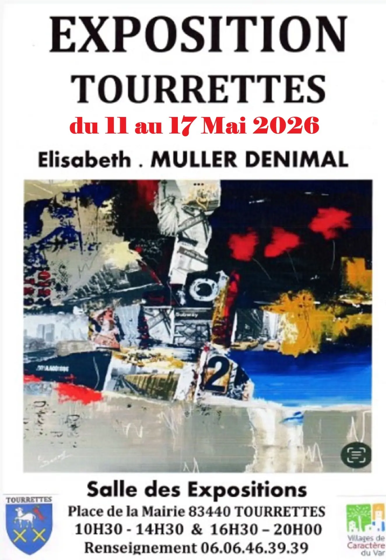 A Tourrettes dans le Var, Mme Elisabeth Muller Denimal expose ses toiles aux couleurs de ses souvenirs d'Afrique et d'ailleurs, dans ce joli village à l'attrait artistique: tableaux, sculptures, habitent les murs, telle une galerie d'Art à ciel ouvert.