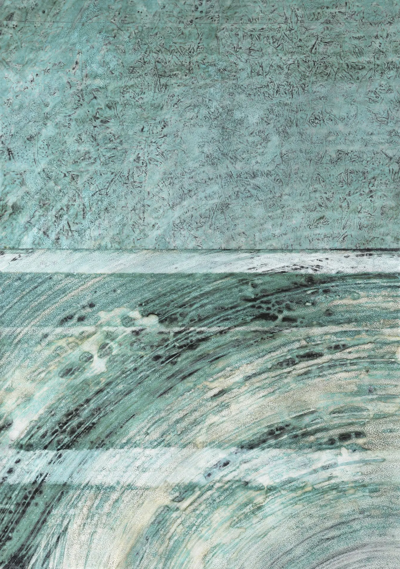 Fasciné par le bouillonnement des vagues dans leurs recompositions infinie, il tente d’en comprendre leur caractère mystérieux. Inspiré par les tableaux abstraits de Pierre SOULAGES, Pat DE WILDE s’adonne à la peinture à l’eau comme « une renaissance jubilatoire ». Cette forme d’expression à la fois gratifiante et exigeante est une rencontre privilégiée.