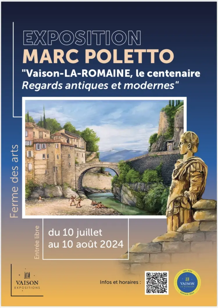 À l’occasion de la célébration du CENTENAIRE de l’appellation dite « LA ROMAINE » de la Ville de Vaison, Marc Poletto, artiste-peintre local, vous présente différents regards sur la cité.