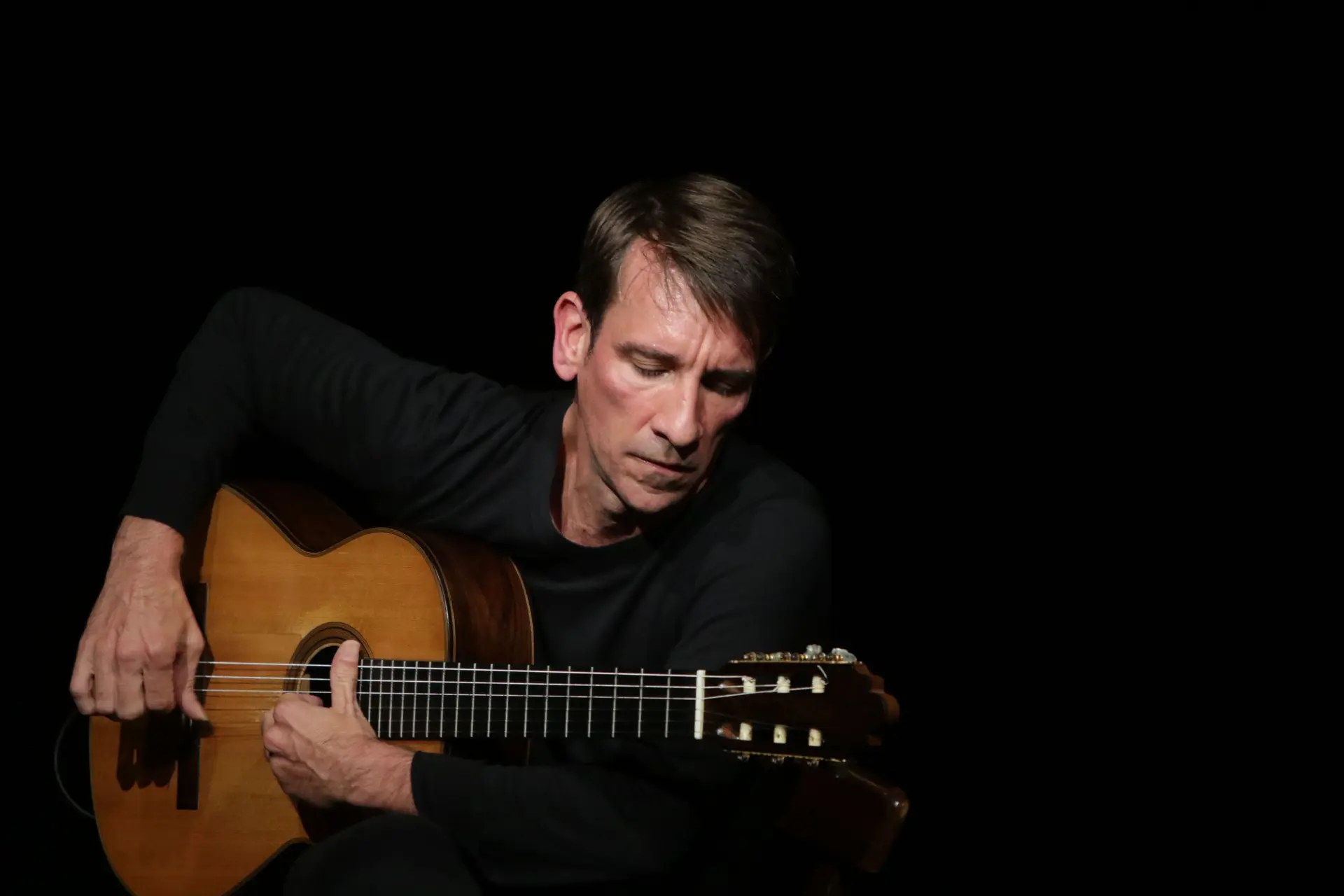 Le guitariste Benjamin Dupé, en résidence à la Citadelle, allie sa maîtrise de la guitare classique au pilotage savant d'un dispositif technologique, hybride et vivant, qui transforme les vibrations des cordes en une multitude de particules sonores.