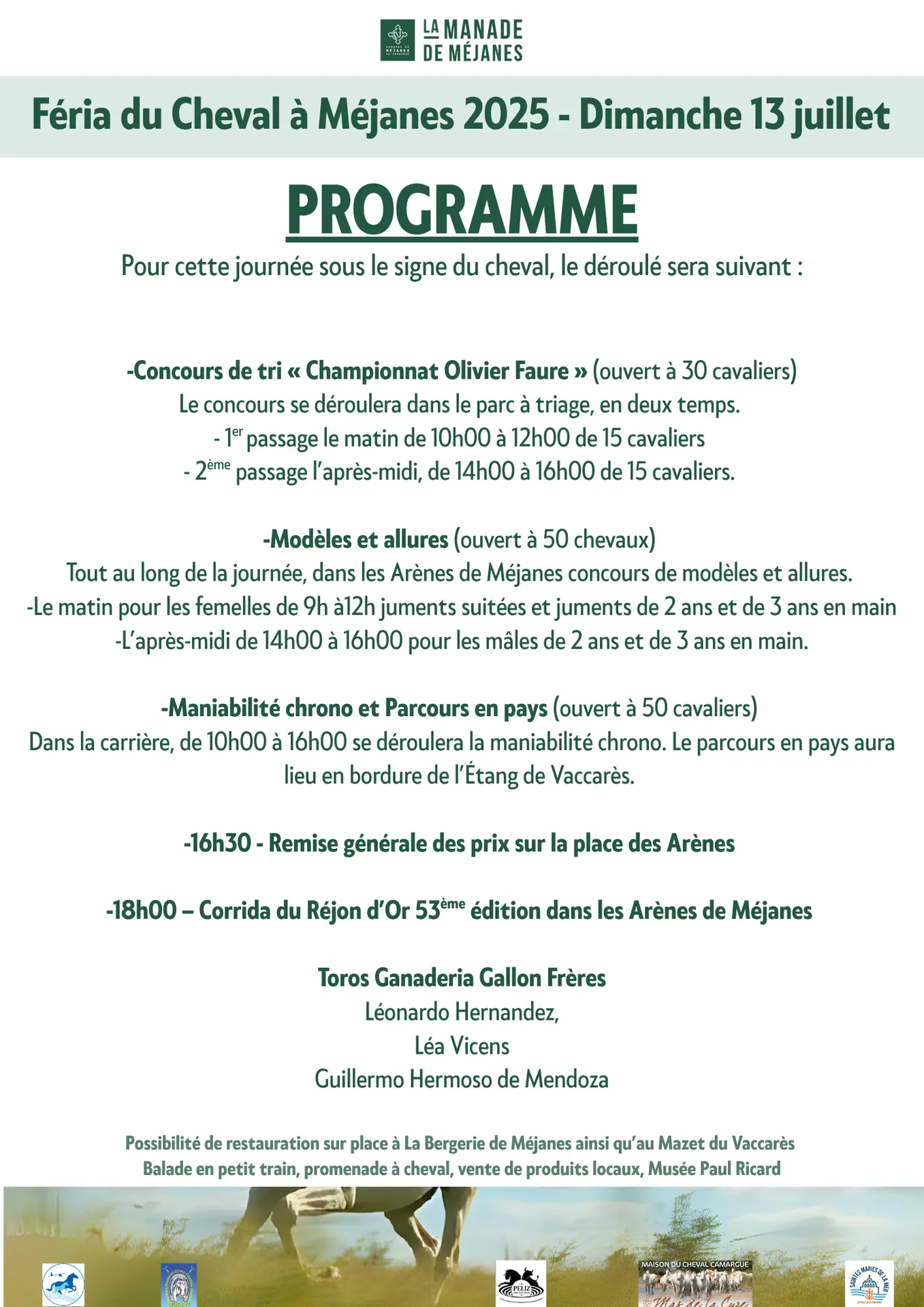 Pour cette journée sous le signe du cheval, le déroulé sera suivant :