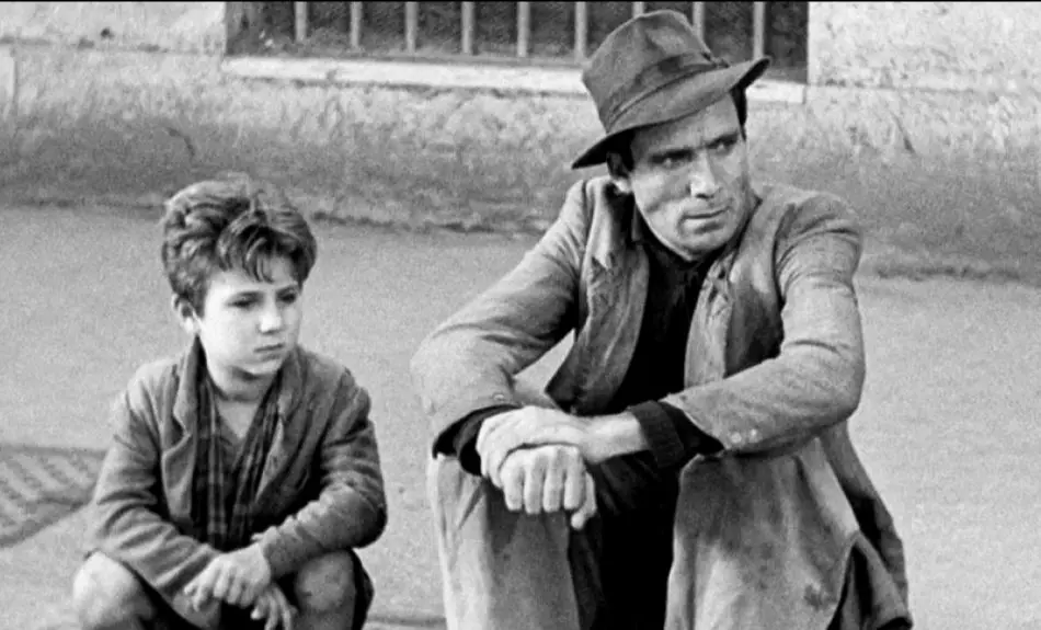 Colleur d’affiches, Antonio se fait voler son instrument de travail : sa bicyclette. Toute une journée, il erre dans Rome à la recherche du vélo et du voleur, sous l’oeil inquiet de Bruno, son petit garçon. Voilà un film phare du néo-réalisme italien, proche du réel, ancré dans la réalité sociale d’une époque, l’Italie d’après-guerre dans une famille pauvre.
