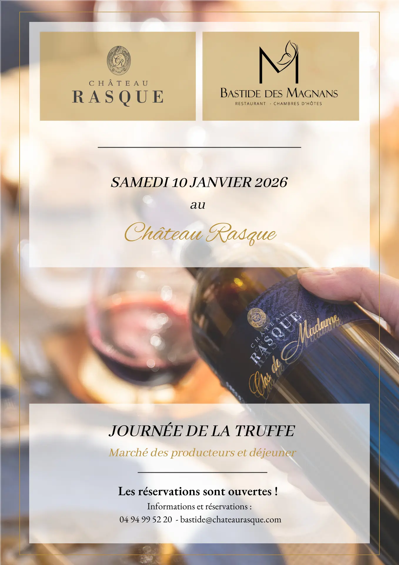 Monsieur Boeuf et son Chef Benjamin Mozzone du restaurant la Bastide des Magnans vous proposent un menu tout en finesse où la truffe se décline dans des plats raffinés.