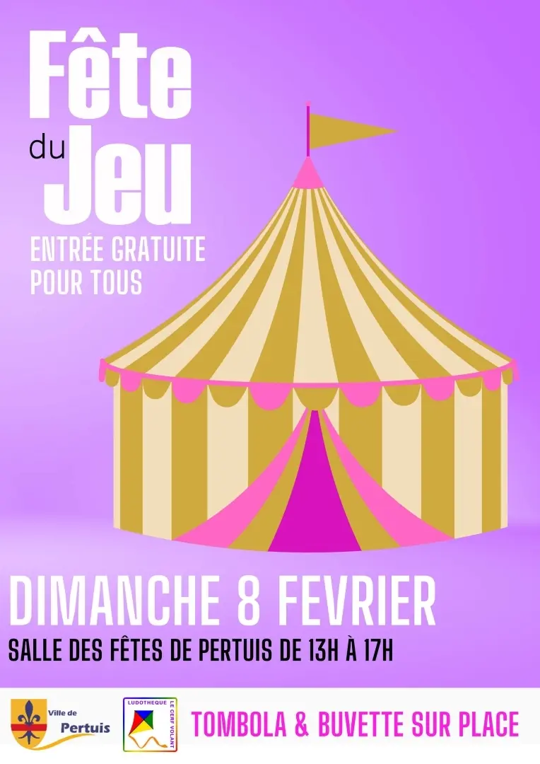 Venez nombreux à la fête du jeu le dimanche 8 février 2026 à l'Espace Georges Jouvin de 13h00 à 17h00 organisé par la Ludothèque de Pertuis.