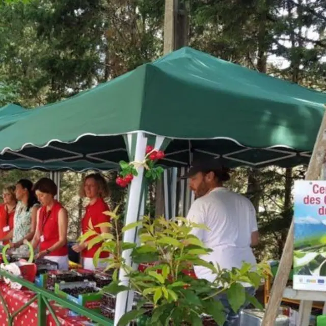 L'association CALVIAS propose sa traditionnelle fête du terroir et de la cerise. Rencontre avec les producteurs au travers du stand de vente de cerises, jus de cerises, sirop, glace et thé à la cerise.