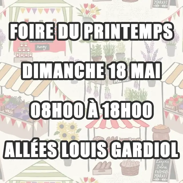 Foire du printemps avec un grand marché de produits et de marchands de la région. Pour participer, nous envoyer un mail à marche@ville-riez.