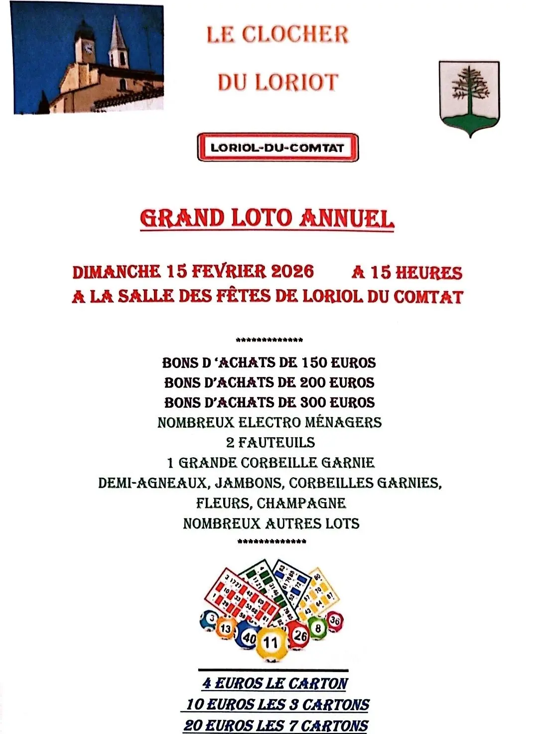 Ca vous dirait de remporter des bons d'achat, de l'électroménager, des corbeilles garnies et bien plus encore ? C'est ce que vous pouvez tenter de gagner lors du loto organisé par le Club du Troisième Âge de Loriol-du-Comtat. Venez nombreux !