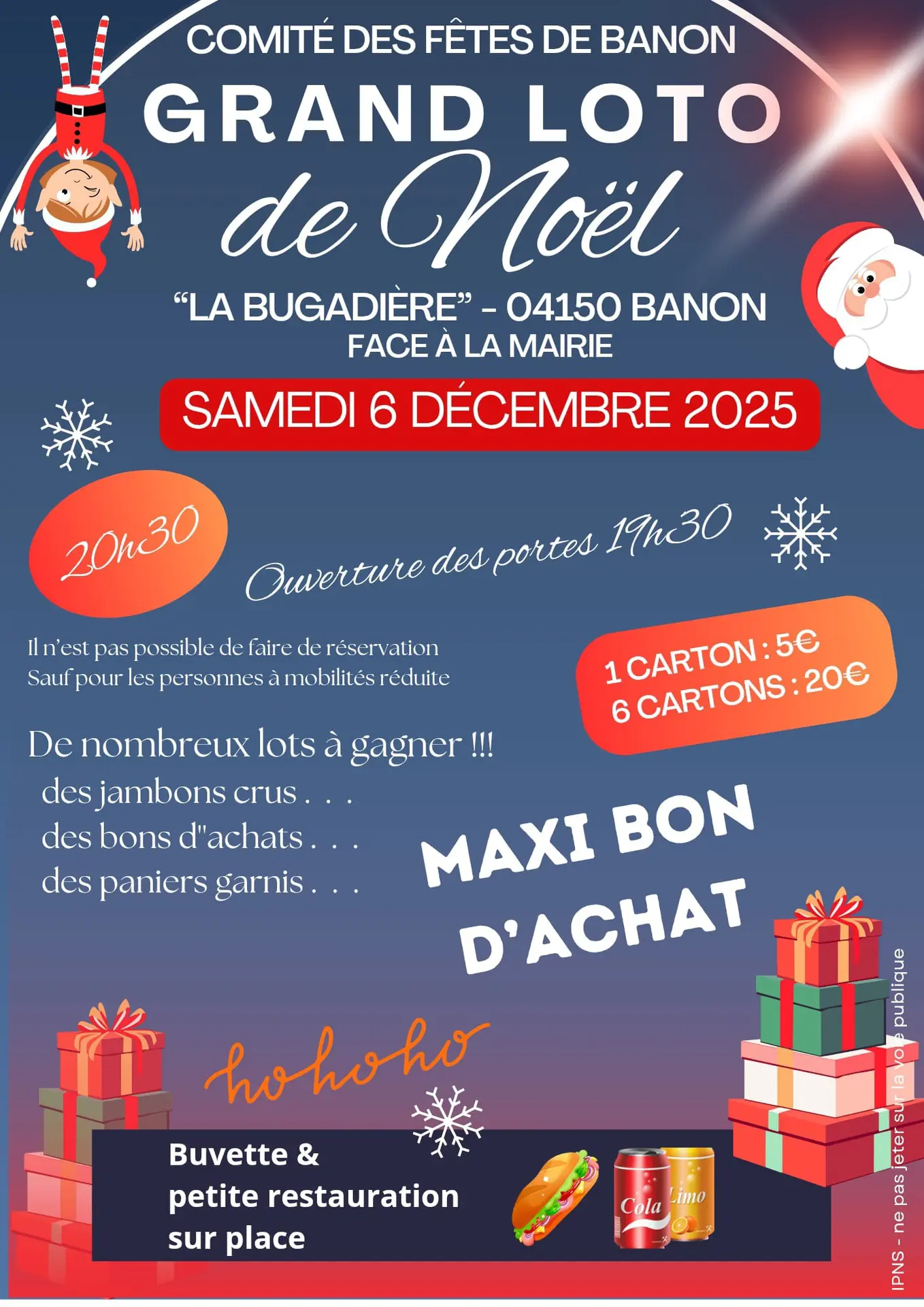 Grand loto de Noël organisé par le Comité des Fêtes de Banon.