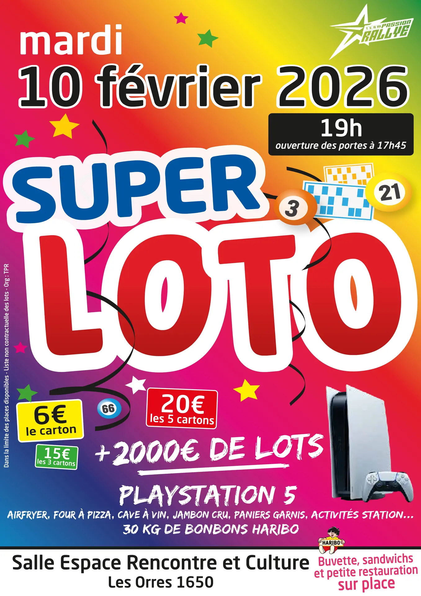 + 2000€ de lots: PLAYSTATION 5, Airfryer, Four à pizza, Cave à vin, jambon cru, paniers garnis ... Org° team rallye passion