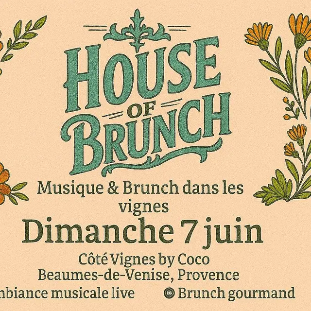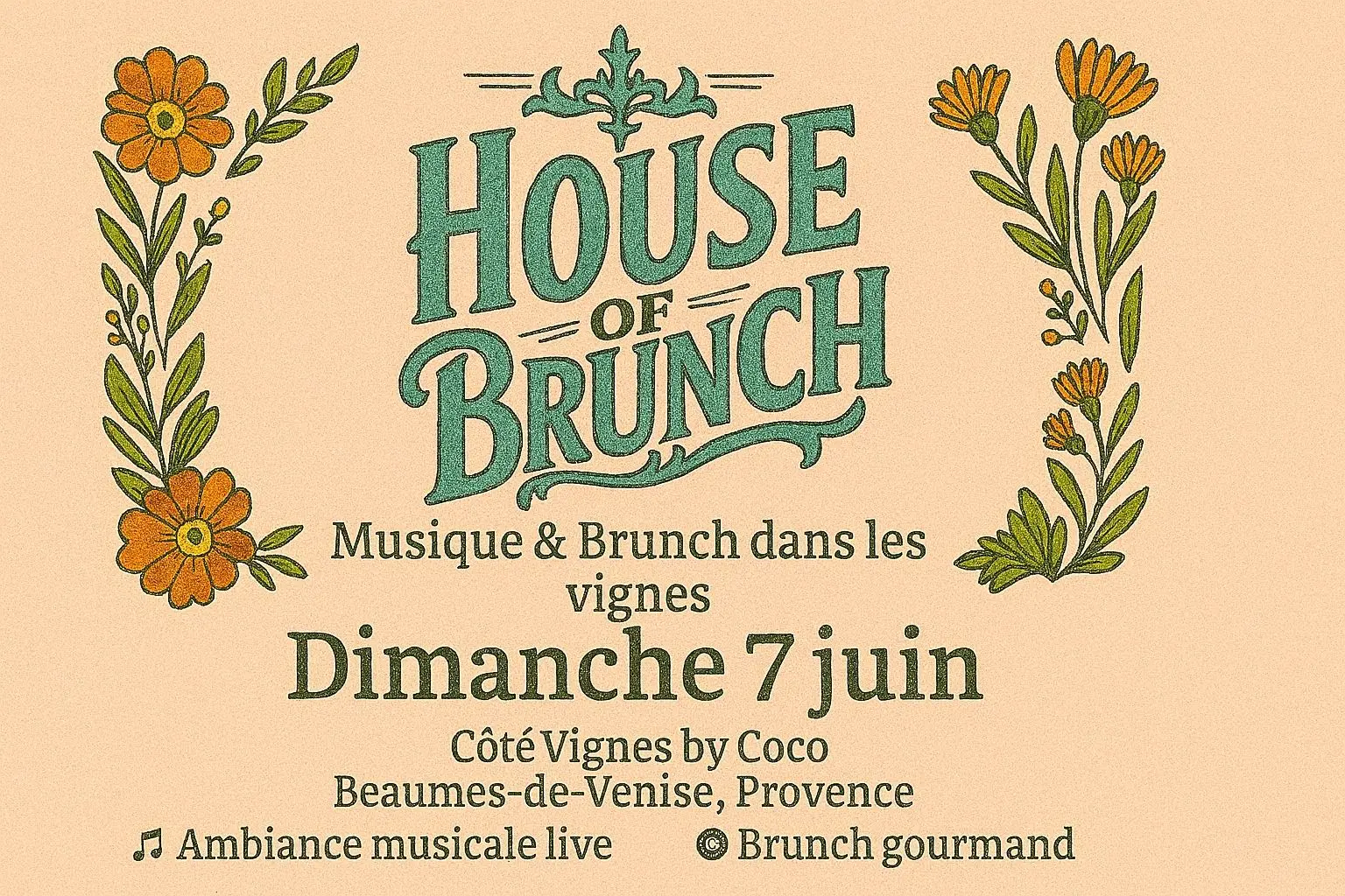 Envie d’un dimanche gourmand au cœur des vignes ? Rejoignez le House of Brunch à Beaumes-de-Venise : musique live, ambiance conviviale et brunch savoureux chez Côté Vignes by Coco. Un moment chic et détendu en Provence à ne pas manquer !