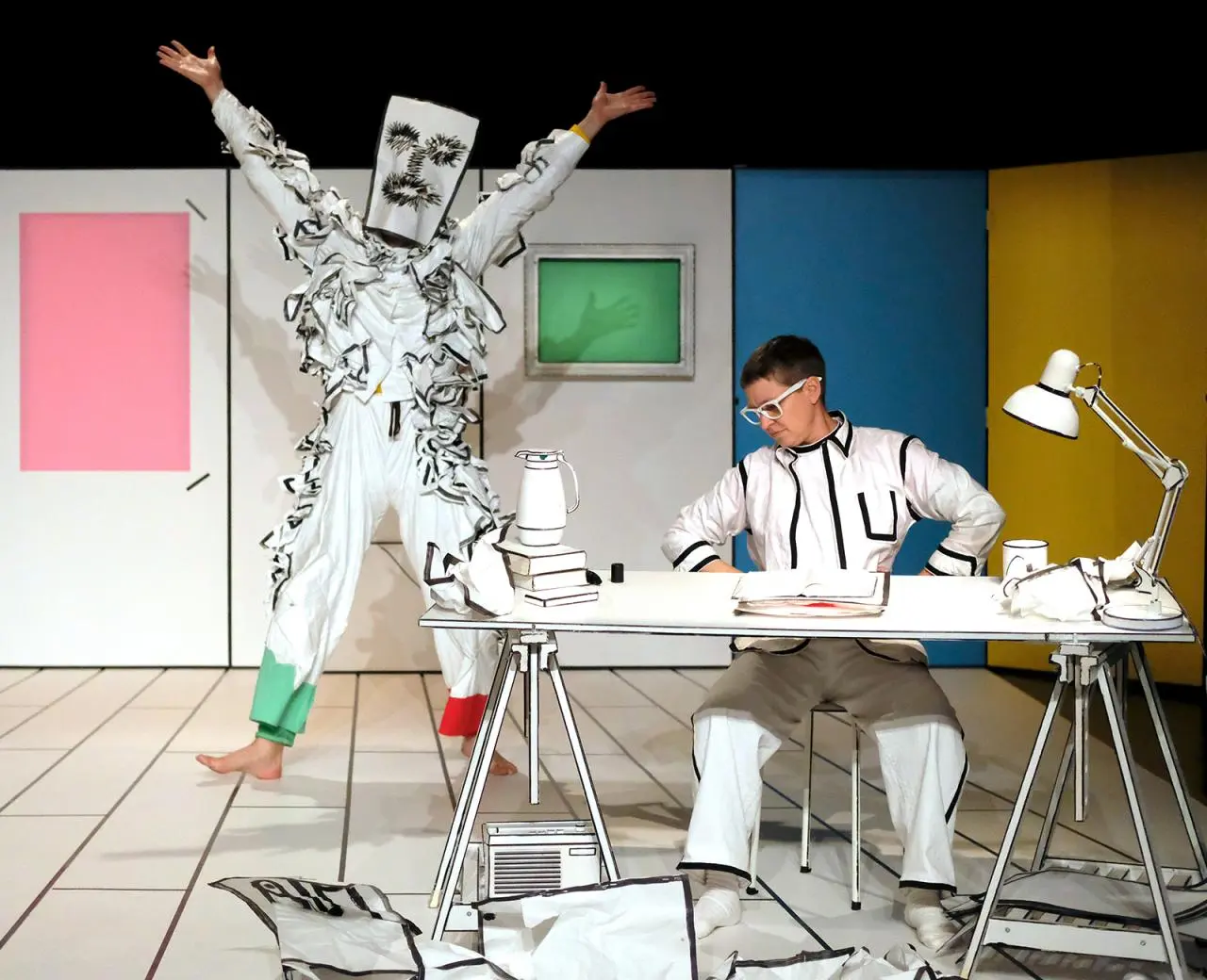 Immobile & Rebondi propose une rêverie visuelle et chorégraphique dans laquelle la frontière entre le réel et le imaginaire se dissout. Le spectacle naît dans un espace épuré, presque immobile, où un décor blanc en papier semble figé. Petit à petit, les murs frémissent, se modifient, se plient… et l’espace se transforme sous nos yeux.
