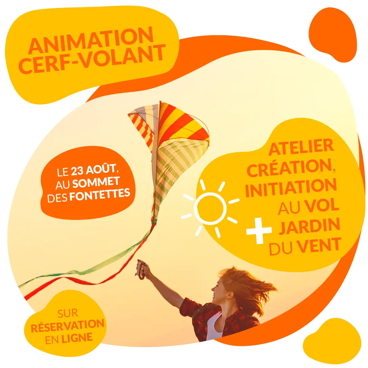 Montée télémix + journée cerf-volant avec jardin du vent + création cerf-volant et initiation au vol = 15€ (sans BBQ) pack limité à 50 personnes.