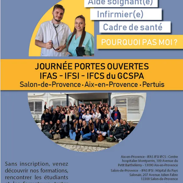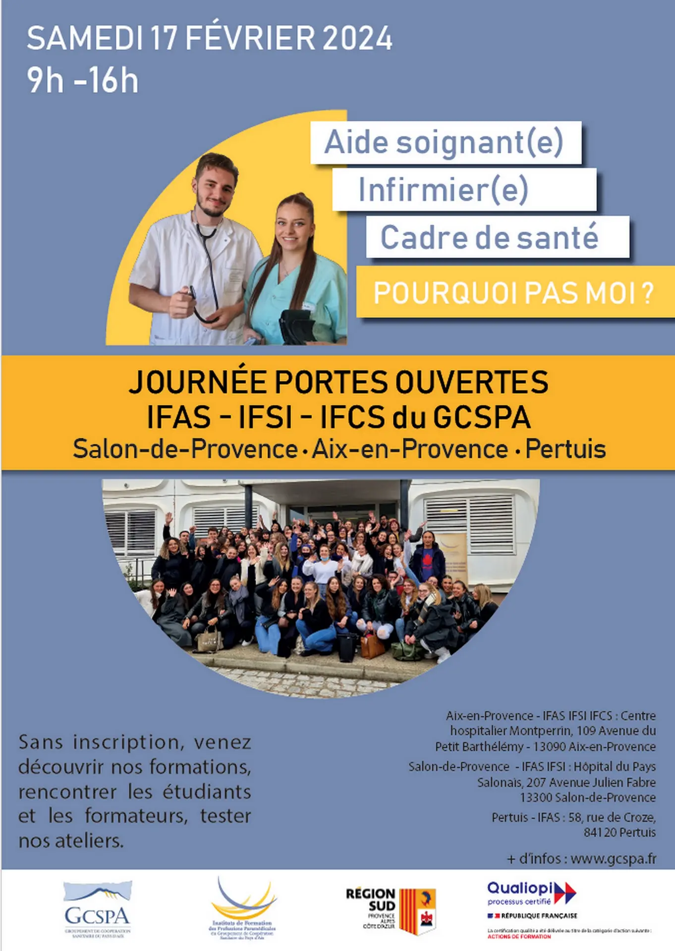 Les instituts de formation du GCSPA organisent leur journée Portes ouvertes, (Institut situé dans l'enceinte du Centre Hospitalier Montperrin). Venez à notre rencontre pour :