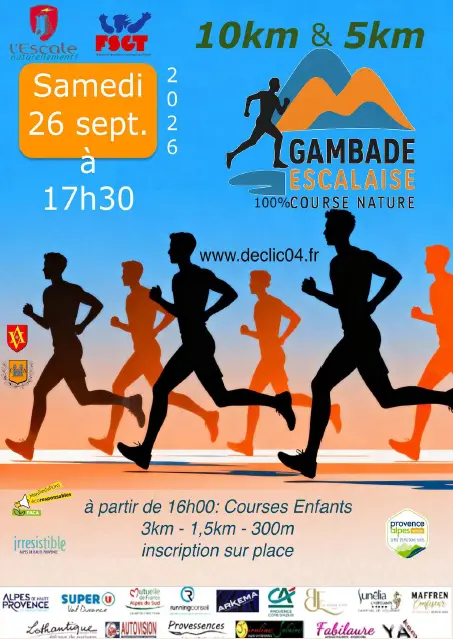 L’association « Déclic 04 » organise la 29e ème édition de la « Gamba Escalaise » avec : 2 boucles ; la première de 10km et la deuxième de 5km.