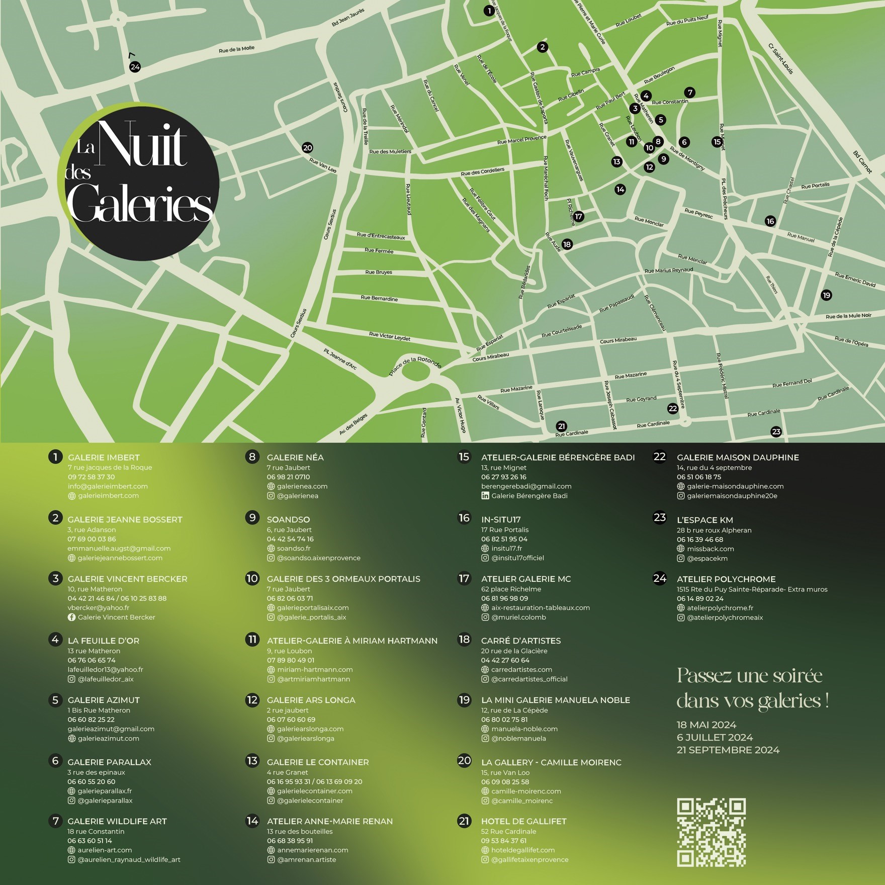 Pendant une soirée, déambulez dans les rues d’Aix à la découverte des galeries, découvrez les expositions, rencontrez et échangez avec artistes et acteurs du monde de l’art !