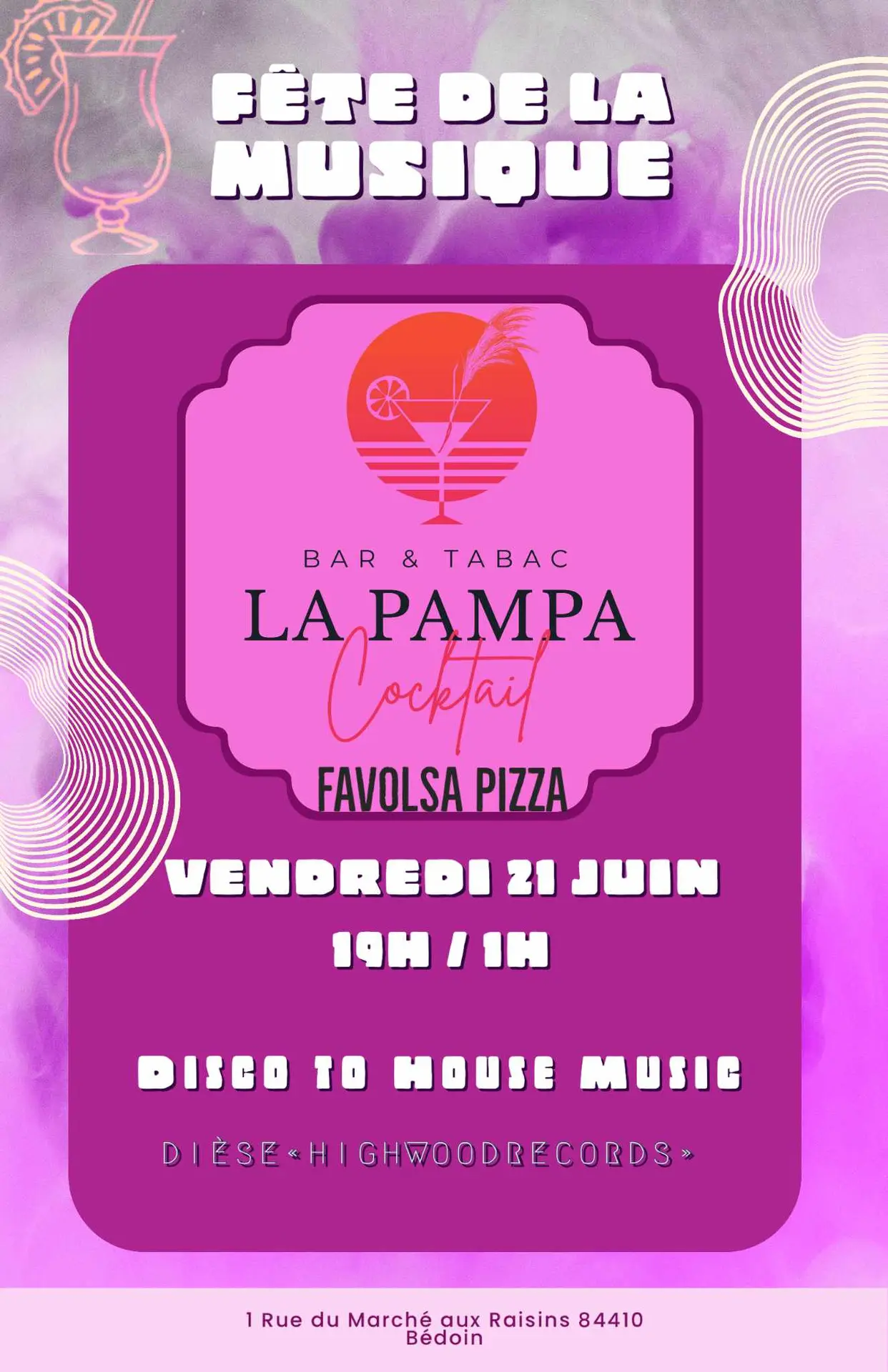 Venez profiter de la première fête de la musique de la Pampa. La Pampa et Favolsa Pizza partagent leurs terrasses pour que puissiez profiter pleinement de votre soirée