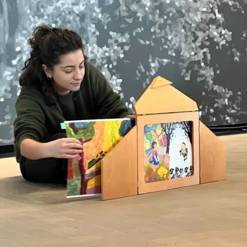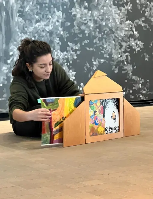 À travers une histoire, les enfants voyageront du Liban à Arles, en passant par Paris et la Californie, exploreront les espaces de La Tour et découvriront des œuvres colorées, dont la grande fresque en céramique de l’artiste.