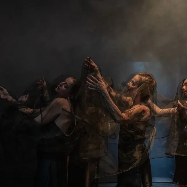 Quand elle s’ouvre alors d’innombrables cortèges de carnaval et de mariés vêtus de blanc organisent une ronde obsédante qui restituent des bacchanales tout à la fois euphoriques et désespérées. Sans aucune parole, mais sur une dramaturgie musicale, cette création s’apparente à de la danse-théâtre.