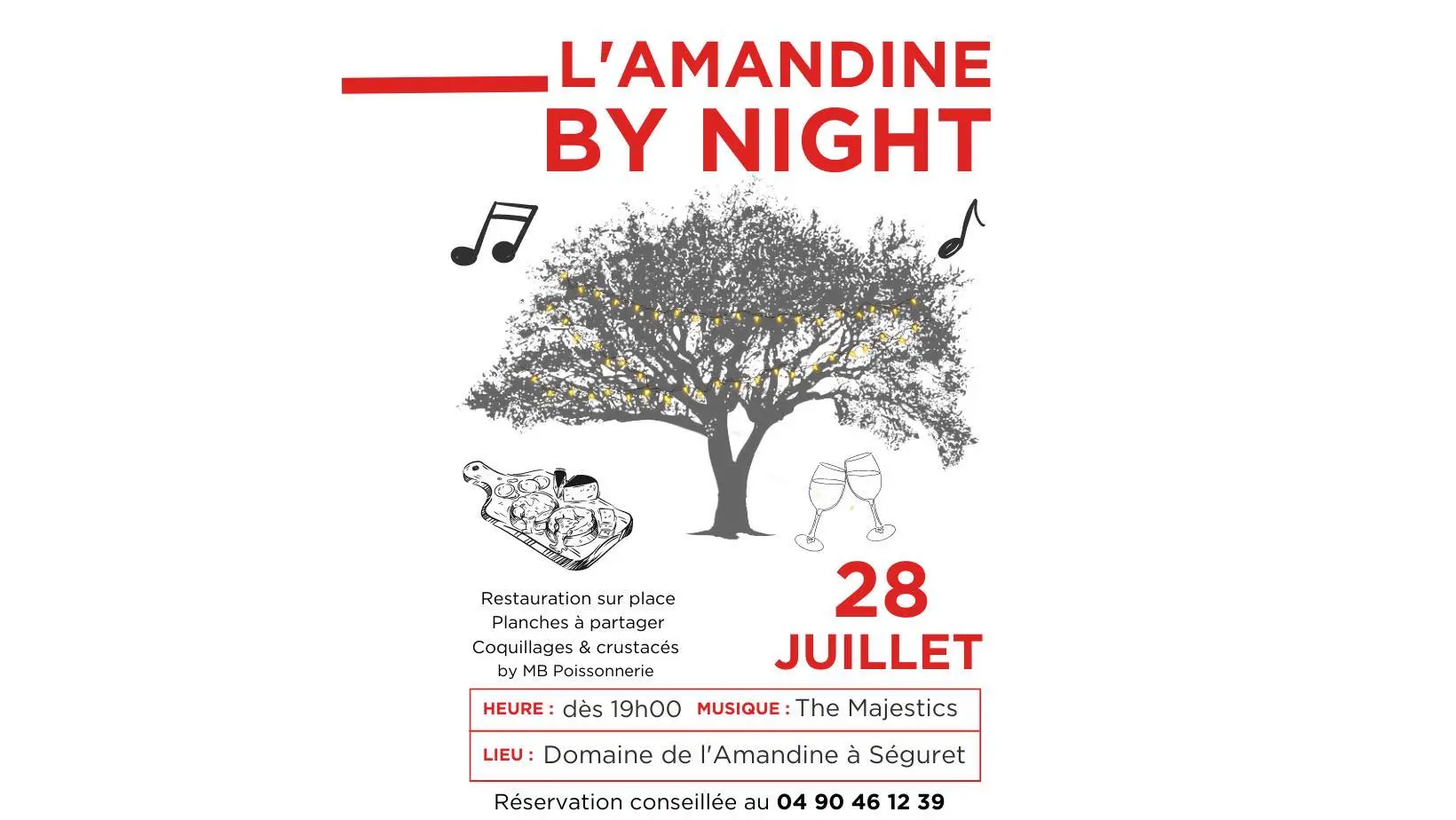 Soirée conviviale au cœur du domaine autour d'un verre de vin, le tout en musique avec 'The Majestics' et restauration sur place : ( planches à partager - coquillages et crustacés by MB Poissonnerie).