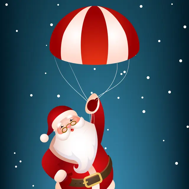 Arrivée du Père Noël par les airs puis défilé du char du Père Noël par la Pomme dans tous ses états jusqu’à la Place des Aires.