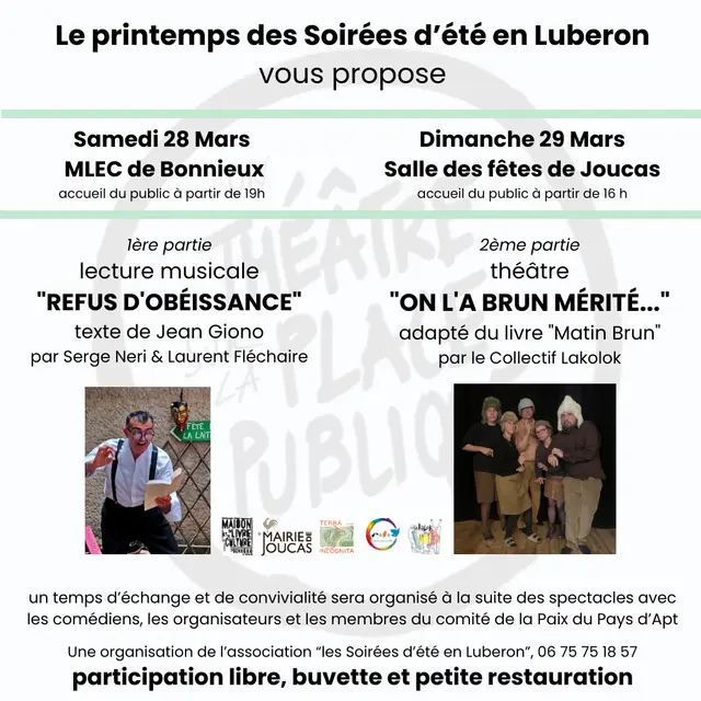 - le Samedi 28 Mars, MLEC de Bonnieux, accueil du public à partir de 19h
