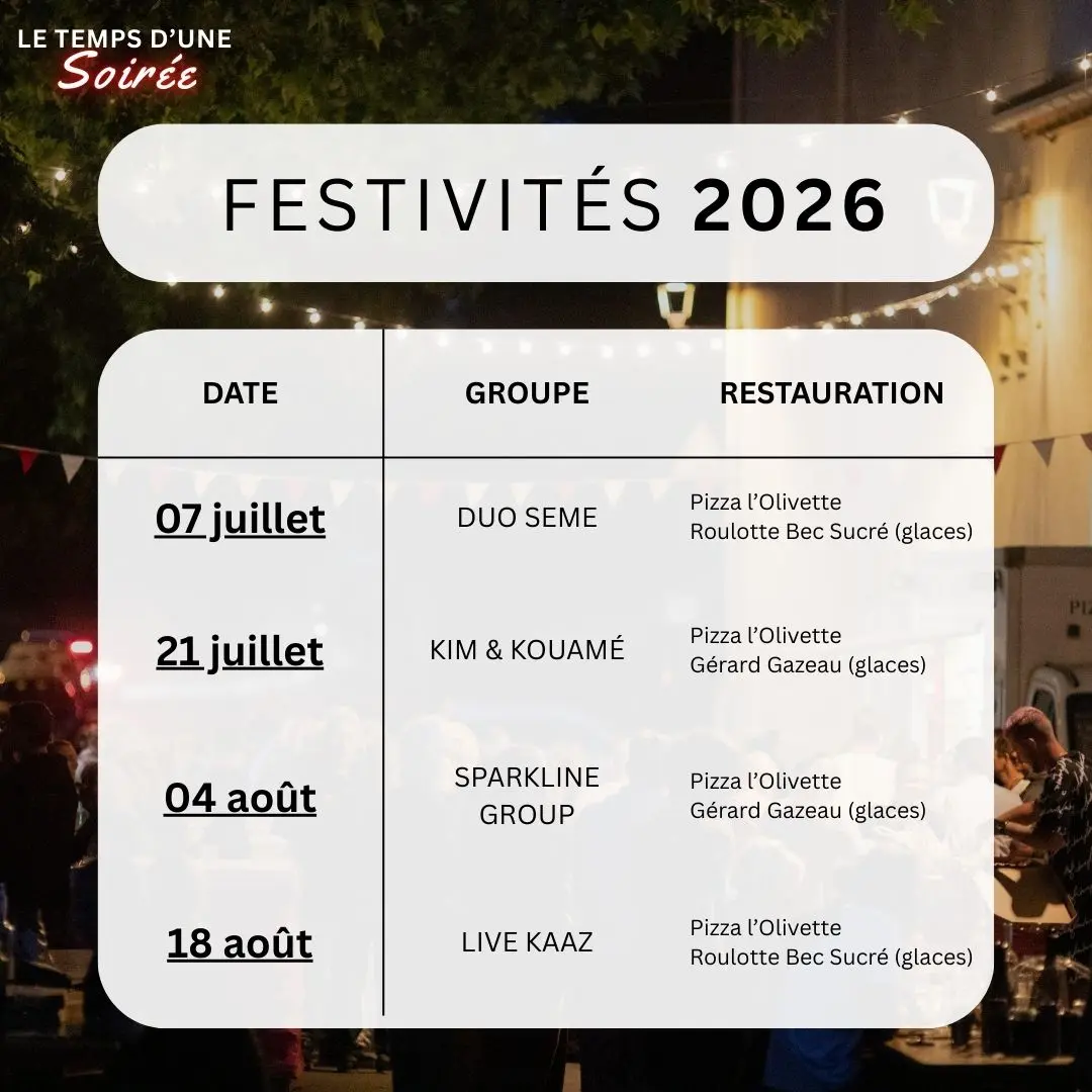 • Food trucks : pizzas l'Olivette, glaces artisanales par Bec Sucré ou par Gérard Gazeau